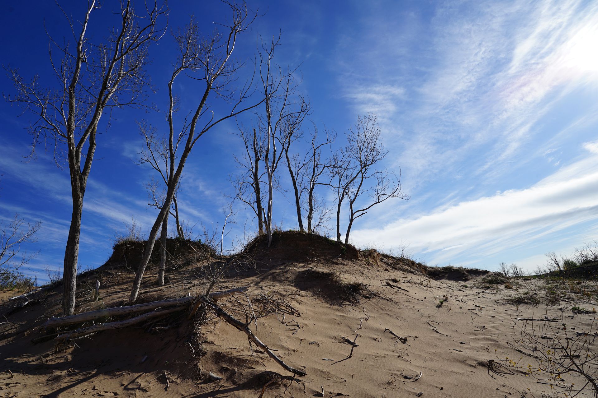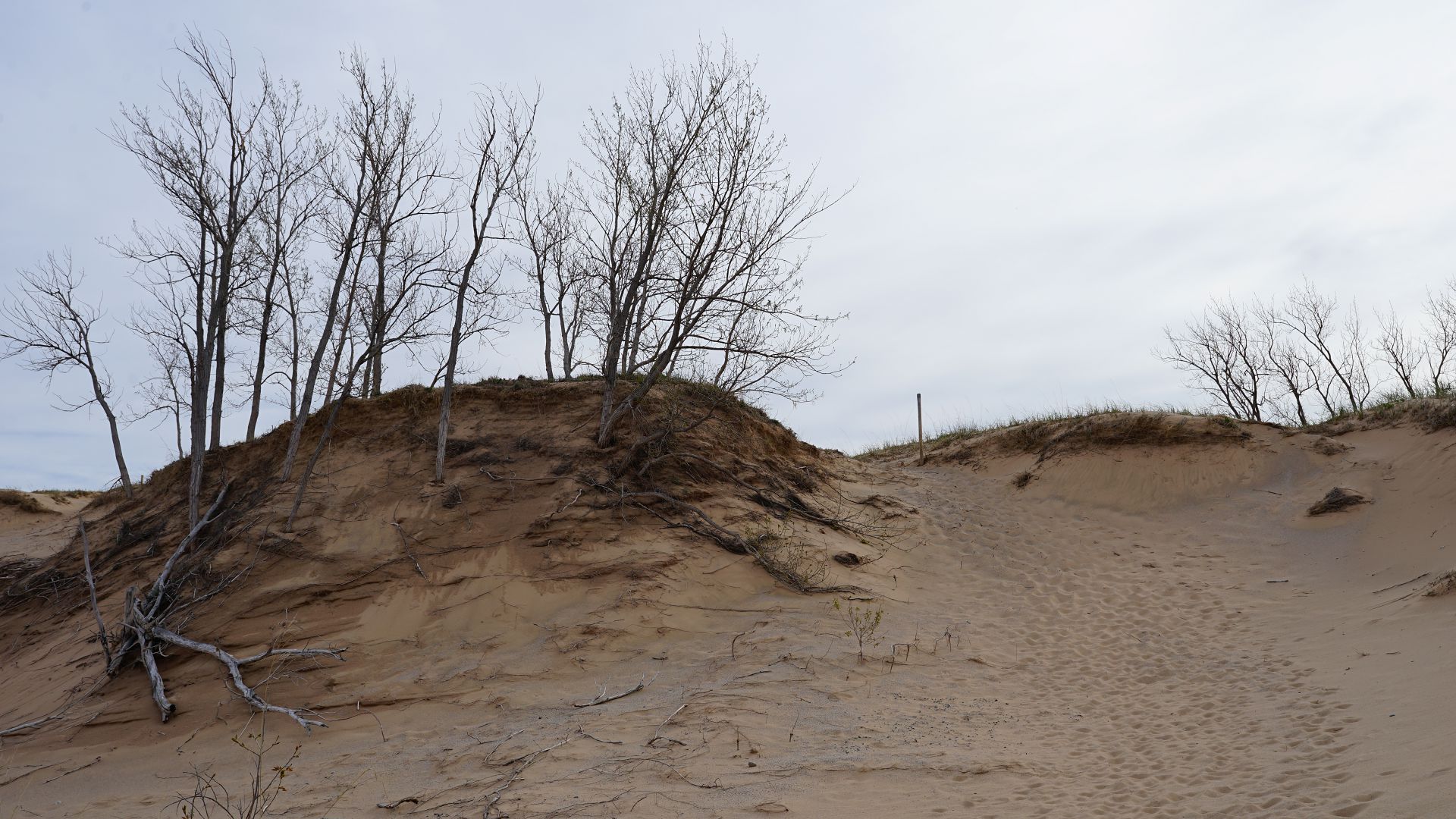 5. Ghost trees, killed by the migrating sand. 6. Lake Michigan.