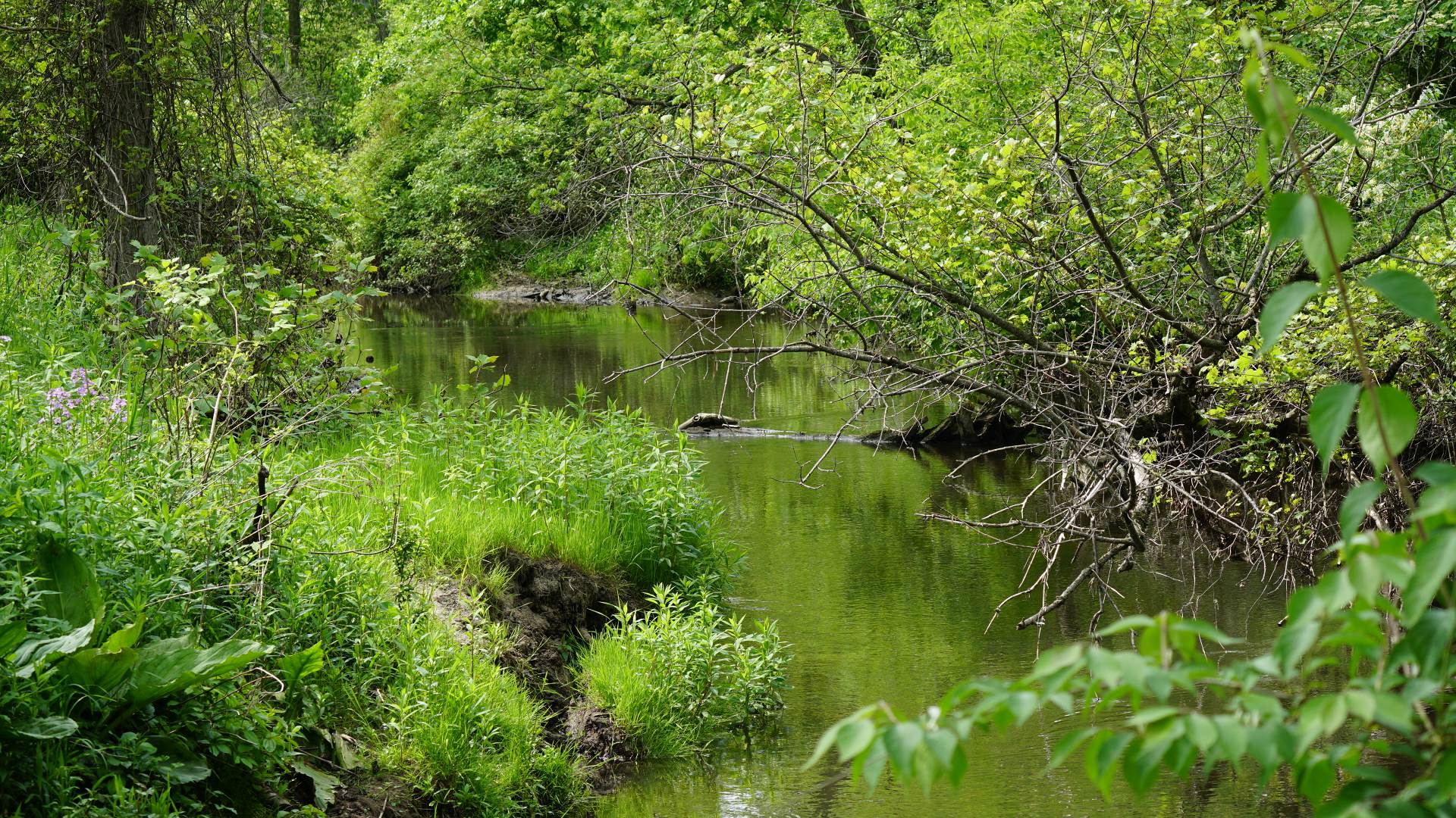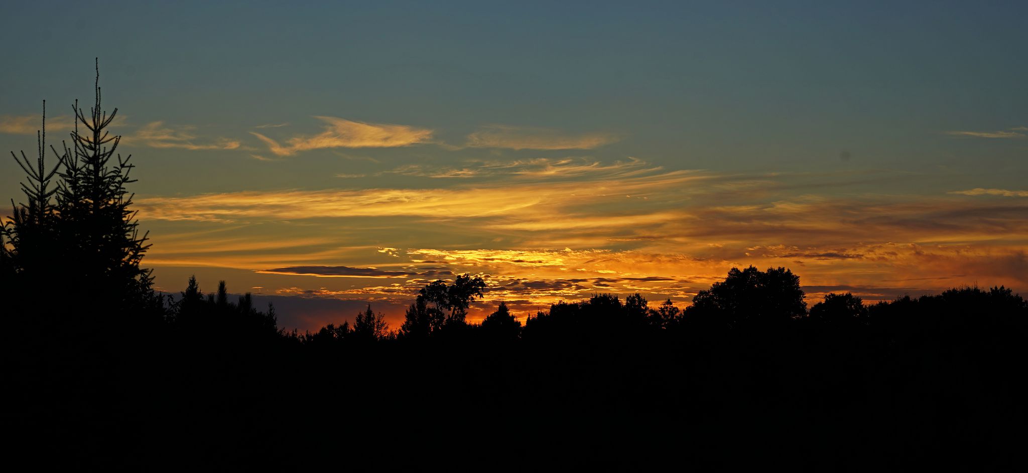 The weather was wet and gloomy all day, but towards evening I caught this glimpse of blue sky over one of the ponds. 2023.