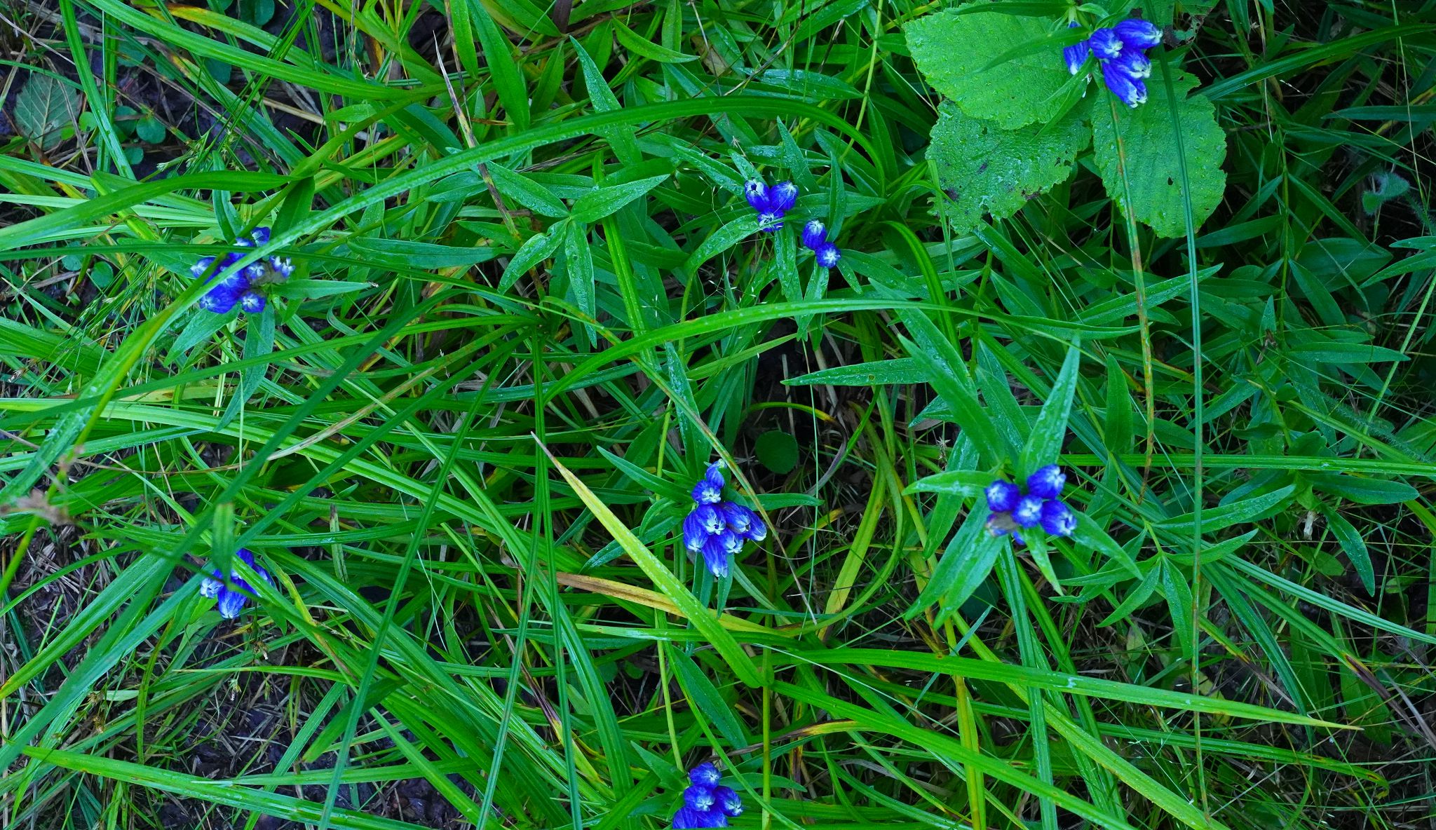 1. View from cabin after rain. 2. Spotted Knapweed. 3. Forest.